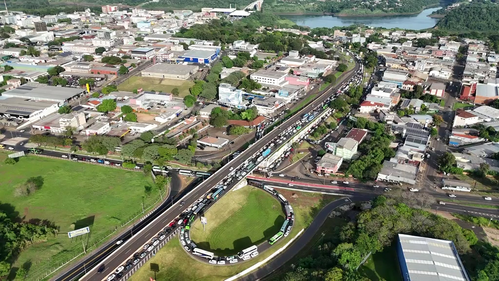 A fila na BR-277 ultrapassou 2,5 quilômetros de extensão, chegando às proximidades do Porto Seco, após o viaduto da Avenida Paraná. O cenário é de lentidão e paciência para quem tenta atravessar a fronteira.